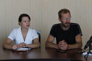 На фото (зліва направо): директор Олевського музею Анна Вжесінська та керівник археологічної експедиції в Олевську Андрій Петраускас