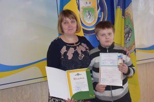Учень Олевської ЗОШ №2 Козловець Ілля разом зі своєю вчителькою Скумін Н.С.