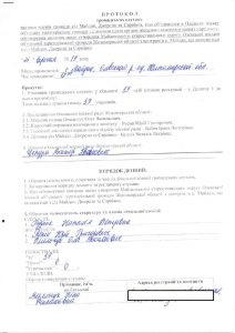 1Протокол громадських слухань частини членів громади сіл Майдан, Джерело та Сарнівка(що об’єдналися в Олевську міську об’єднану територіальну громаду і створили єдині органи місцевого самоврядування) з предмету: обговорення питання щодо створення Майданського старостинського округу Олевської міської об’єднаної територіальної громади Житомирської області з центром в с. Майдан, що складається з сіл Майдан, Джерело, та Сарнівка