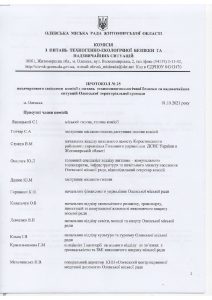 Протокол №25 позачергового засідання комісії з питань техногенно-екологічної безпеки та надзвичайних ситуацій Олевської територіальної гомади