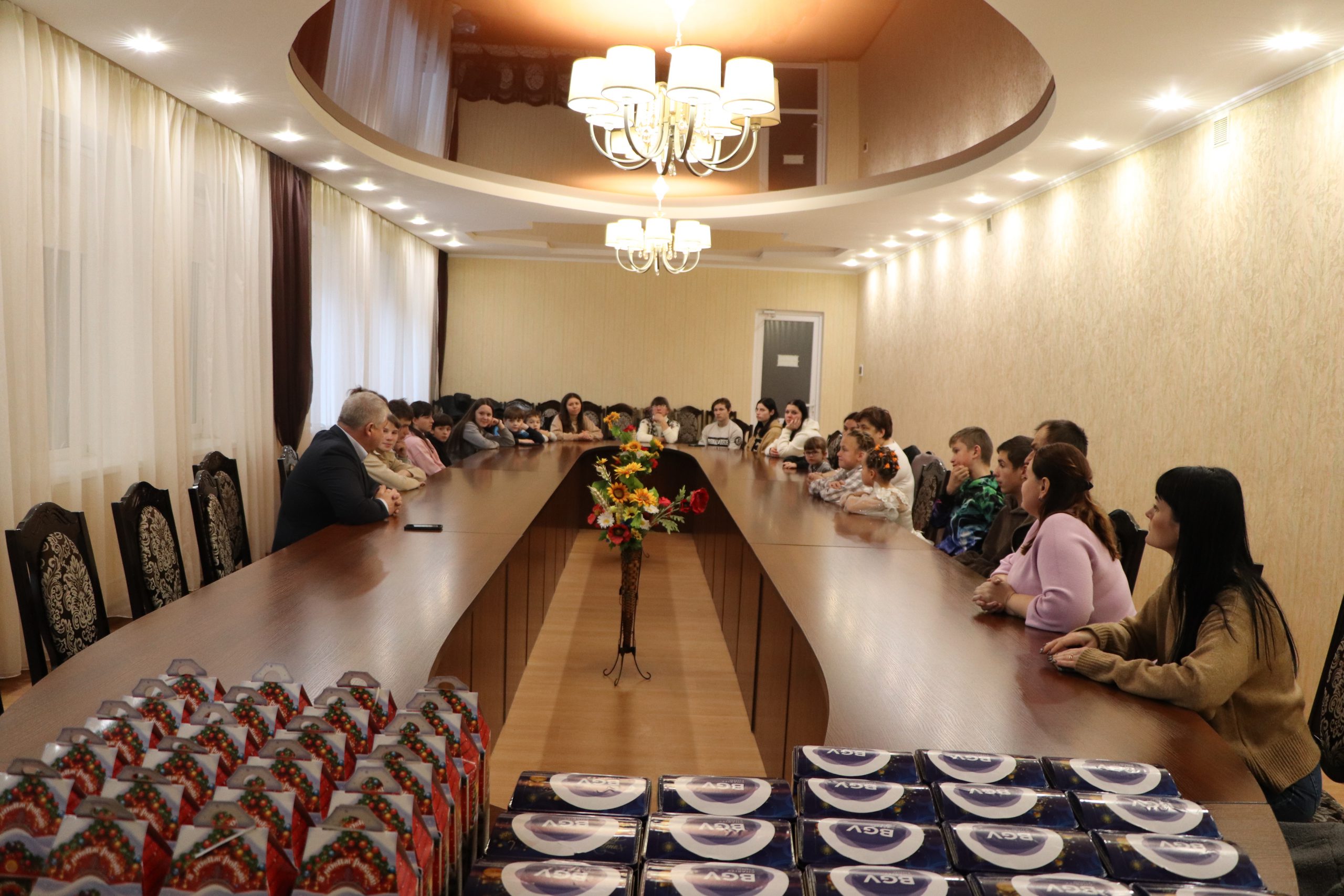 В приміщенні міської ради напередодні Дня Святого Миколая було по-справжньому затишно – тут зустрілися діти з прийомних сімей та дитячих будинків сімейного типу, аби разом привітати одне одного з прийдешнім святом. Міський голова Сергій Лисицький озвучив дітям теплі побажання для створення невеликої передноворічної атмосфери.