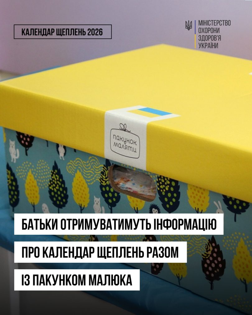 В рамках співпраці Міністерства охорони здоров’я та Міністерства соціальної політики України у новому році батьки зможуть отримати інформаційні матеріали про оновлений Календар профілактичних щеплень разом з Пакунком малюка. Їх додадуть до нової партії, яка буде зібрана у 2026 році. Це допоможе одразу орієнтуватися в якому віці необхідно робити щеплення та які вакцини використовують.