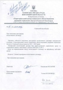 Колективний договір  між комунальною установою «Територіальний центр соціального обслуговування (надання соціальних послуг)» Олевської міської ради та трудовим колективом територіального центру