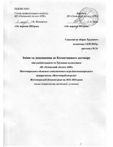 -Зміни та доповнення до колективного договіру між адміністрацією та трудовим колективом ДП «Олевський лісгосп АПК» Житомирського обласного комунального агролісогосподарського підприємства «Житомироблагроліс» Житомирської обласної ради