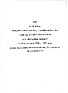 Звіт керівника Майданського ЗДО Яковець Тетяни про діяльність закладу за 2020-2021 н. р.