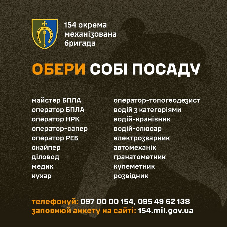 🚨 Запрошуємо до 154-ої окремої механізованої бригади 16-го армійського корпусу оперативного командування «Північ» Збройних Сил України 🚨