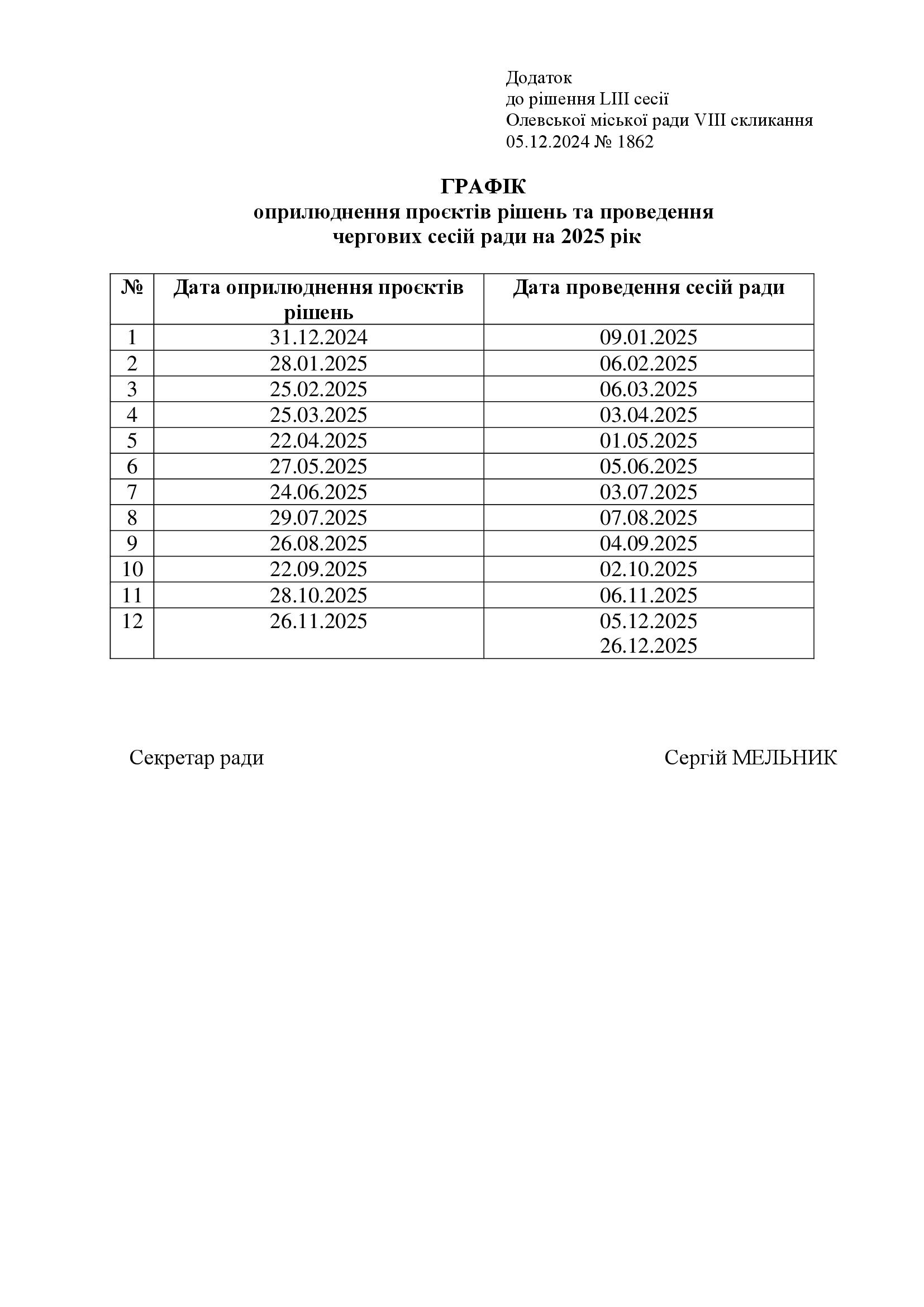 Графік проведення чергових сесій ради на 2025 рік